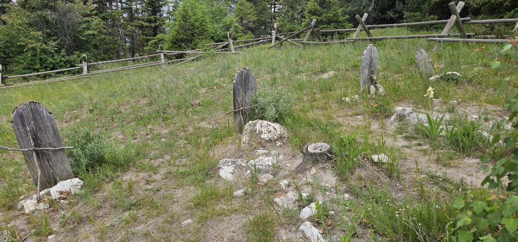 Getting up to Garnet was impressive. We clearly were driving up a mountain. The views we could see were enough to stop and look. The road was wide and smooth, made of gravel. We even came across a few cattle. Where we live, there are never free-ranging cows, especially on the roads. Along the way were a few small stops to get us out of the car, including an old, probably once forgotten, cemetery.